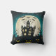This darkly elegant Halloween pillow has a deep blue background showing full moon, a haunted house, lighted Jack-O-Lantern, flying bats and spooky graveyard. Great as a Halloween gift to a friend or loved one this holiday!