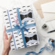 Blue and Black and White gift wrap with funny cute little moustaches and bowties.