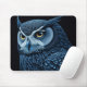 Ai art depicting a serious looking majestic serene blue and black owl with the night sky background.