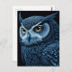 Ai art depicting a serious looking majestic serene blue and black owl with the night sky background.