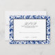 Elegant navy blue and black wedding RSVP response card. Featuring a modern swirl damask pattern. Easily personalise for your wedding day.