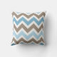Blue and Brown and White Chevron Pattern Zigzags Pillow.
