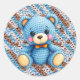 Blue and Brown Crocheted Teddy Bear Classic Round Sticker