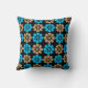Blue and brown floral pattern on black background throw pillow