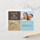 Blue and Brown Save the Date photo postcards with your choice of adding 1 or 2 photos. Leave in the bottom photo of the heart in the sand for a beach theme wedding. Chic brown and blue colour block design with an easy to use template - just add the names of the Bride & Groom, along with the wedding date in the space provided.