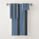 Blue and charcoal five stripe pattern bath towel set
