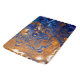 Blue, copper and white marble fluid art bubbles abstract modern digital pour painting art.
