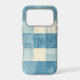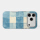 A rustic weathered buffalo check pattern in varying shades of blue and cream, evoking a sense of vintage charm and coastal vibes