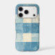 A rustic weathered buffalo check pattern in varying shades of blue and cream, evoking a sense of vintage charm and coastal vibes