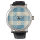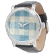A rustic weathered buffalo check pattern in varying shades of blue and cream, evoking a sense of vintage charm and coastal vibes