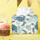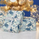 This coastal inspired gift wrap features a pattern of sea turtles and coral in shades of blue and cream.