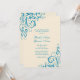 This beautiful chic wedding invitation features a ivory cream background with teal blue corner flourishes that give it a pretty and sophisticated look. Matching RSVP and Save the Dates also available in my shop!