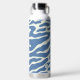 Blue and cream Modern Abstract Wavy Lines Pattern Water Bottle