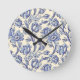 Blue and Cream Tulips Toile French Country Decor Round Clock