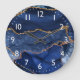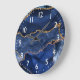 Blue and Faux Gold Glitter Marble Agate Large Clock