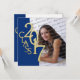 Class of 2017 gold and blue design photo graduation invitation. Square invitation has photo of graduate on front and text on back. Change text to make this invitation as formal or casual as you would like.