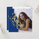 Class of 2018 gold and blue design photo graduation invitation. Square invitation has photo of graduate on front and text on back. Change text to make this invitation as formal or casual as you would like.