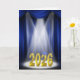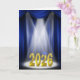 Gold 2025 text in the spotlight on stage with a blue curtain backdrop for graduate