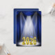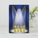 Commencement ceremony invitation for the class of 2026 in blue and gold on stage with spotlights.