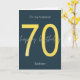 Personalised navy blue and gold 70th birthday card for husband. The front features of the number 70 in gold with a happy birthday message. You will be able to easily personalise the front with his name, the inside card birthday message and the back with the year. This personalised 70th card would make a wonderful birthday keepsake for him.