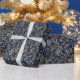 Blue and Gold Abstract Art Deco Leaves Pattern Wrapping Paper