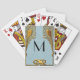 An elegant, Art Deco set of playing cards in blue, with an ornamental gold Art Deco design set on a powder blue background. The monogram can be easily personalised with your own family's monogram.