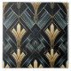 Blue and Gold Art Deco, Shiny and Dark Ceramic Tile
