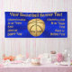 Blue and Gold Basketball Banner with 4 Text Boxes or Delete any or all text. Type in your Team and or Basketball Championship, Year to Year or YOUR TEXT. Great basketball championship party ideas, end of basketball season party or how about for your basketball themed birthday party. CALL DESIGNER Linda to change the design colours, text templates or place any parts of any of my designs for the coolest basketball party decorations and supplies. 239-949-9090