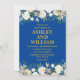 Blue and Gold Boho Bohemian Chic Greenery Wedding Invitation