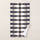 This towel set has an art deco design of triangles and diamonds that look like bowties in blue and gold.