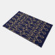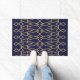 This doormat has an art deco design of triangles and diamonds that look like bowties in blue and gold.
