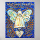 This painting has the text of "What Cancer Cannot Do" in various shades of gold over a blue background. The painting was rendered in acrylic. This was painting number two in the series. It was donated (2005) to Berenson Oncology in West Hollywood,CA. The blue colour theme is a good image for ovarian cancer support (teal), colon cancer support (royal blue) and prostate cancer support (light blue). The white and gold angel is good for childhood cancer support (gold).
