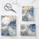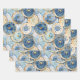 Blue and Gold Clock Pattern Wrapping Paper Sheet