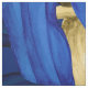 Tropical leaf pattern fabric in accents of blue and gold.
