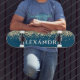 This colorful ocean blue and gold faux glitter design can be given as a gift to celebrate a birthday, anniversary, or any other occasion. It can also be given to a Skateboard Mom for Mother's Day. The typography text of the design is customizable and can be personalized with a person's name or a custom message. You can change the font, font color, font size and background color using the Design Tool.
