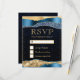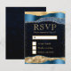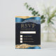 Blue and Gold Glam Tears Bokeh Wedding RSVP Card
