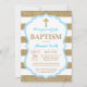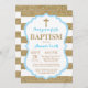 Blue and Gold Glitter Baptism Invitation