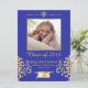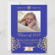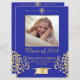 Add your graduates favourite photo to this royal blue and gold graduation party invitation.