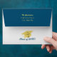 Blue and Gold graduation party. Customisable envelope for a grad party for him or her. The back of the envelope is decorated with a gold graduation cap and graduation year to personalise. Fun graduation party invites envelopes for high school or college graduations.