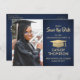 Blue and Gold Graduation Photo Save the Date Postcard