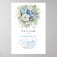 Welcome guests in elegant style with this bridal shower welcome sign featuring watercolor dusty blue, pastel blue, and light blue peonies accented with eucalyptus greenery and soft gold details. Designed in a chic boho, bohemian, or rustic aesthetic, this floral bridal shower welcome poster creates a beautiful focal point at the entrance of your celebration. The timeless blue and gold colour palette pairs perfectly with modern, romantic, or garden-themed décor. Professionally printed on premium materials through Zazzle, this customisable welcome sign offers rich colours, crisp detail, and a polished finish to complement your coordinated bridal shower stationery suite beautifully.