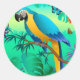 An original illustration of  a blue and gold macaw in the Amazon rainforest.