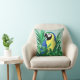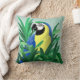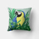Parrot art on pillows with Blue and Gold macaw among tropical leaves