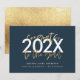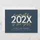 Blue and gold modern script stylish graduation photo announcement. Modern gold effect script text. Part of a collection.