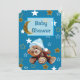 Cute boy baby shower blue and gold moon and stars sleepytime teddy bear in pyjamas invitations.