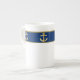 Stylish white china mug, with a golden edged blue band, around the top, with graphics of golden anchors. Customise to add any text you want.