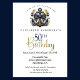 Blue and Gold Nautical Bow Anchor 50th Birthday Invitation