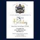 Blue and Gold Nautical Bow Anchor 75th Birthday Invitation