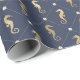Blue and Gold Nautical Seahorse Pattern Wrapping Paper