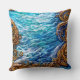 Blue and Gold Ocean Ripple Waves Abstract Cushion